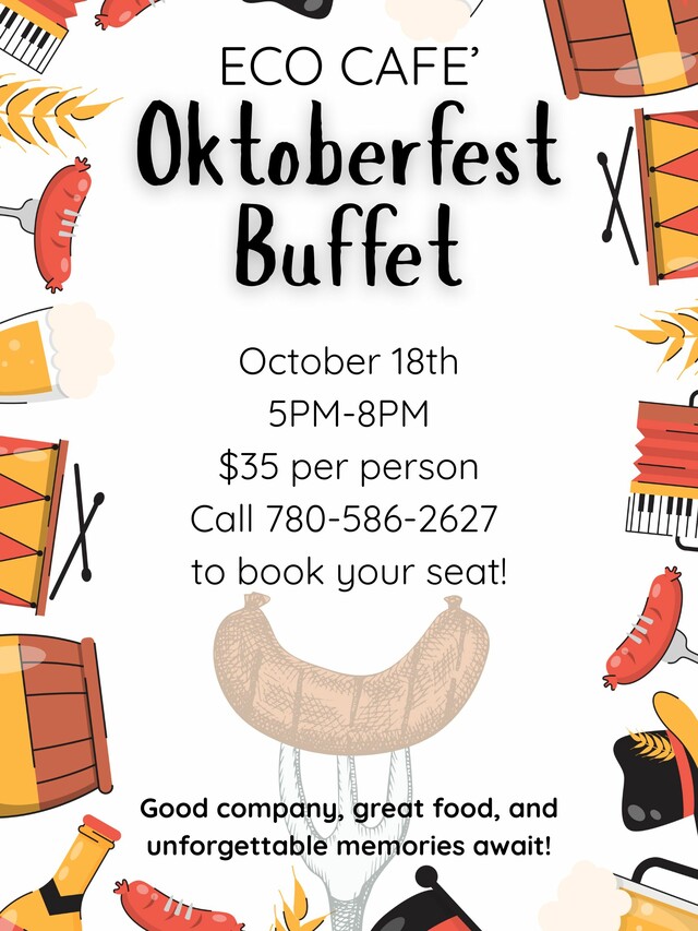 News Posted On Oct 05, 2025 Oktoberfest Buffet Dinner Celebrate the season with a warm plate and good company at our Oktoberfest Buffet!October 18 | 5PM–8PM$35 per personCall 780-586-2627 to book — spaces are limited! PREV